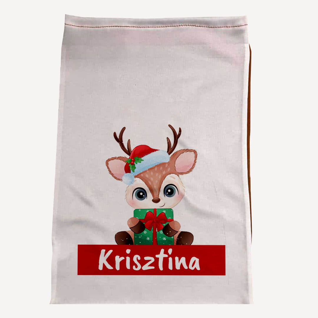 Tedd varázslatossá a Mikulás-napot ezzel az imádnivaló, névre szóló ajándékzsákkal, amelyen egy aranyos, karácsonyi sapkás kisrénszarvas köszönti a gyerekeket! ???? A személyre szabott feliratnak köszönhetően minden gyermek különlegesnek érezheti magát, amikor meglátja a saját nevét a zsákon.