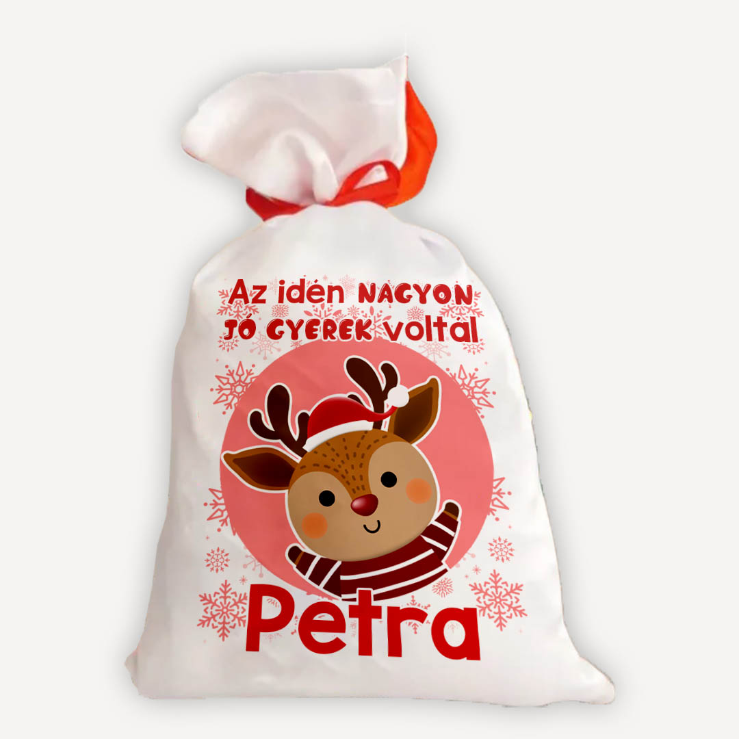 Névre szóló Mikulás zsák rénszarvassal – Az idén nagyon jó gyerek voltál!